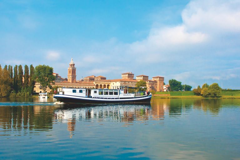 Die einzige Route in Italien, die leichtes Radfahren mit Übernachtungen an Bord eines Flussschiffes verbindet.