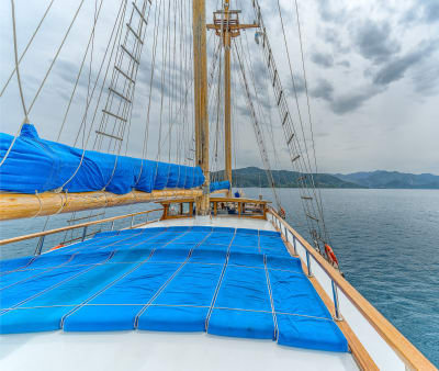 Die Thalassa ist eine dreimastige Motoryacht, die 2002 als traditionelle türkische Gulet gebaut wurde. Ein Schiff mit der besten Ausstattung, das Eleganz mit großem Komfort verbindet.