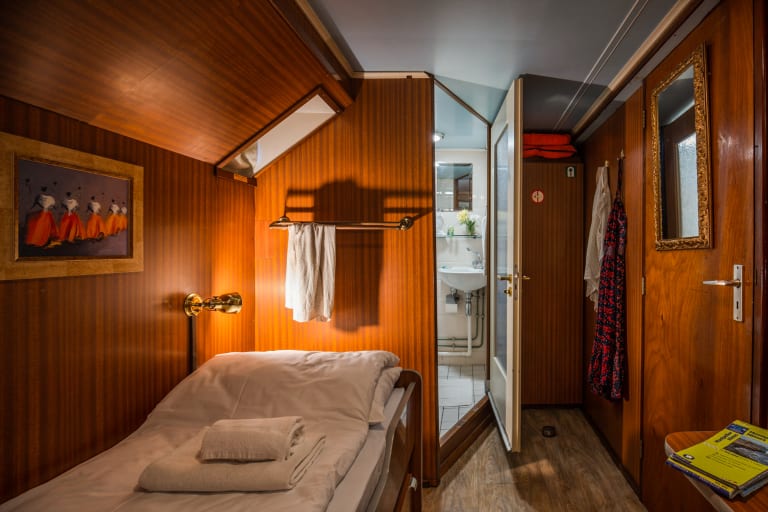 L’Estello schifft zwischen Avignon und Aigues Mortes, mit der provenzalischen Landschaft und der geschützten Wildnis der Camargue im Hintergrund. Dieses Schiff wurde 1937 als klassischer holländischer Lastkahn gebaut und 2018 renoviert. Es ist die ideale Unterkunft, um einen entspannten Rad- und Schiffsurlaub in der Natur zu verbringen.